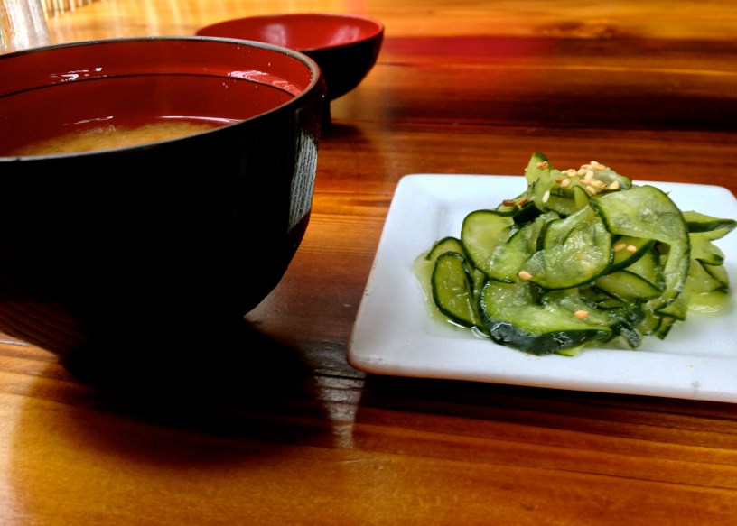 Like the establishment, the dish wields a humility that goes a long way. Along with the soup and calming neutrality of cucumber sunomono, you get a bowl graced with braised beige and sprinkles of green onion. I’ve always preferred steamed over brown rice, so I spent my hour quite fulfilled, taking my time to slice through the meat with the same wide spoon I used to sift through my soup. I could never feign mastery of chopsticks, and I’m still too shy to request forks and knives when the setting brands them anomalous.